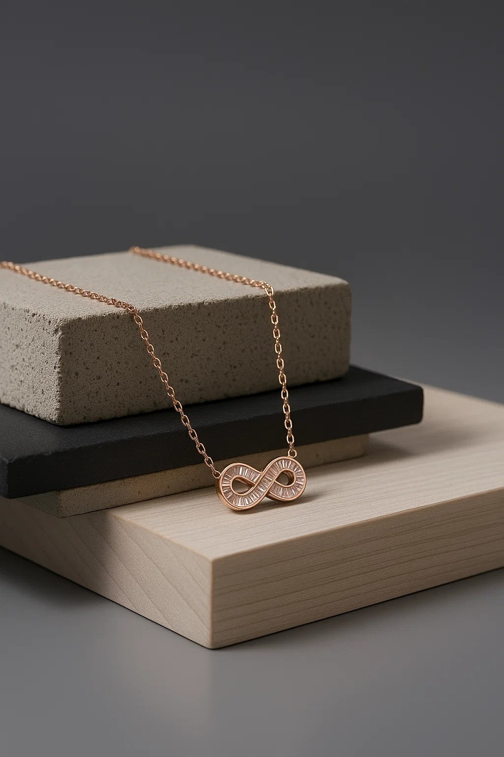 The Infinity Sparkle Necklace symbolizes endless love and limitless possibilities. Featuring a sleek infinity loop adorned with shimmering stones, this piece combines modern design with timeless elegance. Its brilliant shine elevates even the simplest look, making it ideal for daily wear or special occasions. Lightweight and comfortable, it brings a subtle yet stunning charm to your jewellery collection.